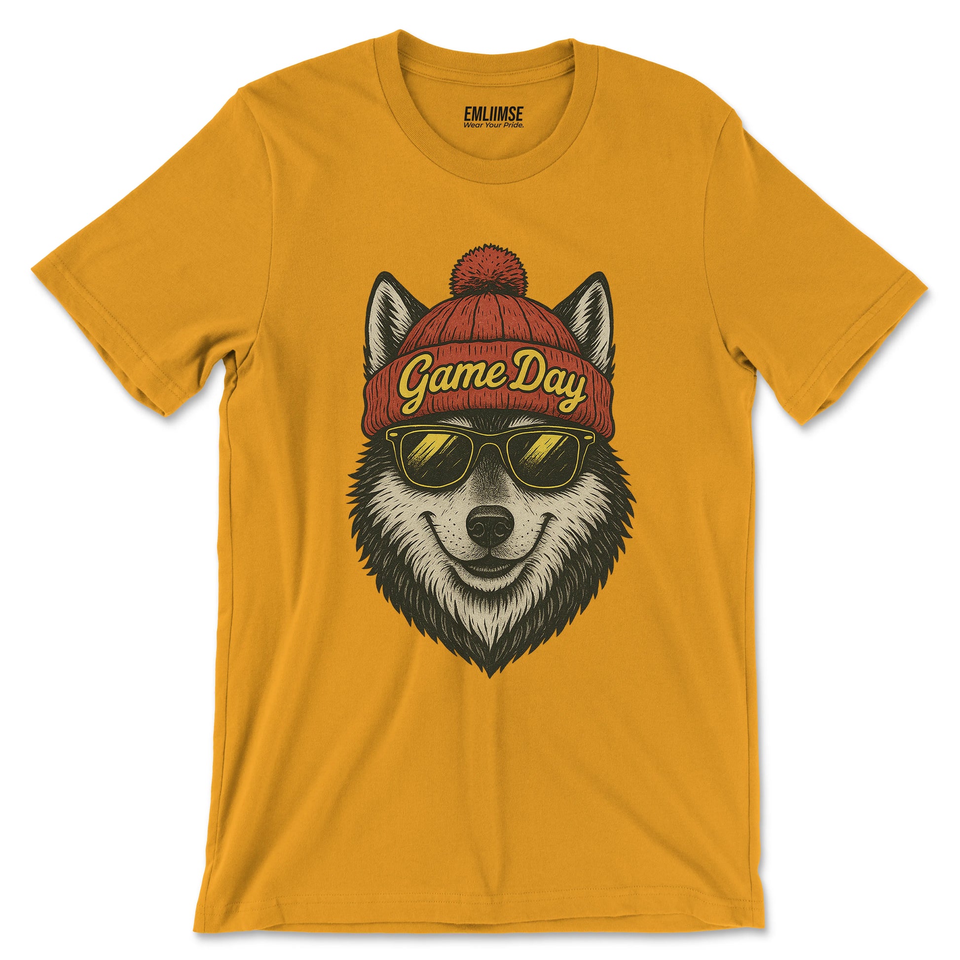 Playful and proud — this wolf design shows off loyal pack energy and fan spirit.